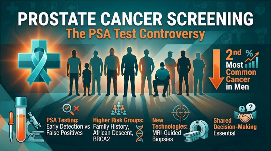 Prostate cancer is the second most common cancer in men globally, yet its primary screening tool — the PSA blood test — remains deeply controversial. While PSA testing can detect cancer early and reduce mortality, it is not cancer-specific, frequently producing false positives that trigger unnecessary biopsies and overtreatment. Major medical bodies disagree on screening guidelines, but universally recommend shared decision-making between patient and doctor. Higher-risk men — those with family history, of African descent, or carrying BRCA2 mutations — should consider earlier screening. Emerging technologies like MRI-guided biopsies and advanced biomarkers are improving precision and gradually shifting the benefit-harm balance toward screening.